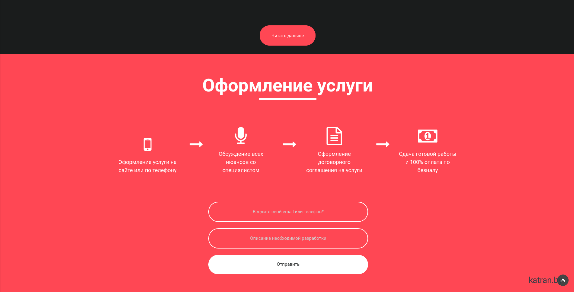 Наша компания выполняет полный цикл разработки web-продукта: дизайн/архитектура/тестирование/размещение на сервере/SEO продвижение/техподдержка.